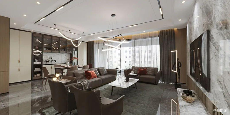 承載著暖黃與自然明凈的色調(diào),給人以沉穩(wěn)溫柔的極致感受。設(shè)計(jì)師將家的精致與生活中的溫馨傾進(jìn)這一方小天地,用色彩與線條傳遞著極簡(jiǎn)空間與眾不同的大氣和精致,身在這溫潤(rùn)包容的底色之中,體驗(yàn)?zāi)?ldquo;萬(wàn)卷古今消永日,一窗昏曉送流年”的愜意生活。