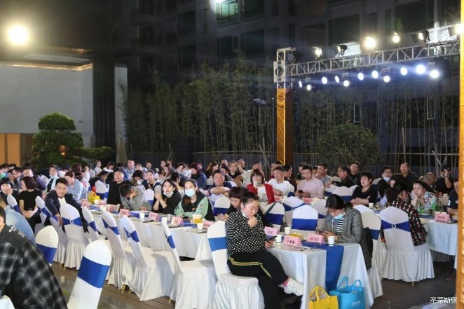 經(jīng)銷商晚宴當(dāng)日晚6時許,以【乘“圣”跨越】為主題的,米蘭通集團(tuán)第45屆國際家具展接待晚宴暨2020年度優(yōu)秀經(jīng)銷商頒獎盛典,在營銷中心四樓景觀花園隆重舉行,來自全國各地的經(jīng)銷商朋友歡聚一堂,共同分享一場精彩紛呈的晚宴。