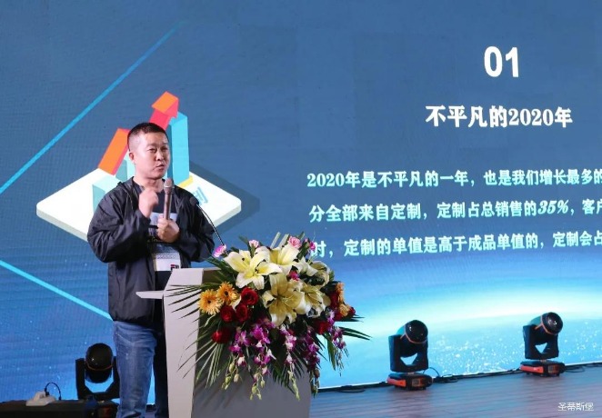 華燈璀璨的開場儀式,點(diǎn)燃了現(xiàn)場如火如荼的氣氛。米蘭通集團(tuán)營銷總經(jīng)理陳玉偉先生對晚會進(jìn)行了主題發(fā)言,他對2020年的營銷工作進(jìn)行了總結(jié),并著重從營銷工作部署、重點(diǎn)項(xiàng)目開展、產(chǎn)品整合、拎包幫扶、渠道運(yùn)營和移動+定制整裝優(yōu)勢等方面對2021年的營銷工作做了全面的統(tǒng)籌規(guī)劃。同時,他還講解了“美國夢凱莎床墊”新品的產(chǎn)品工藝、市場優(yōu)勢、產(chǎn)品定位,使經(jīng)銷商對我們的新產(chǎn)品擁有更深入的認(rèn)識和了解。