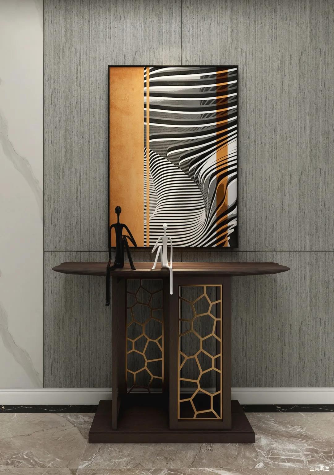 客廳與餐廳雖分兩個空間展開,但無明顯隔斷,室內一眼望去,清透明亮,就近靠窗可引入秀麗美景,迎來充沛的陽光。造型燈線條也頗有意境,讓空間圓潤生動起來,整體顯得大氣雅致,輕奢有范。軟裝搭配的選擇也極為重要哦,好的搭配才能彰顯品位,色彩跳躍的裝飾畫,讓整個空間鮮活生動,飽滿有趣。