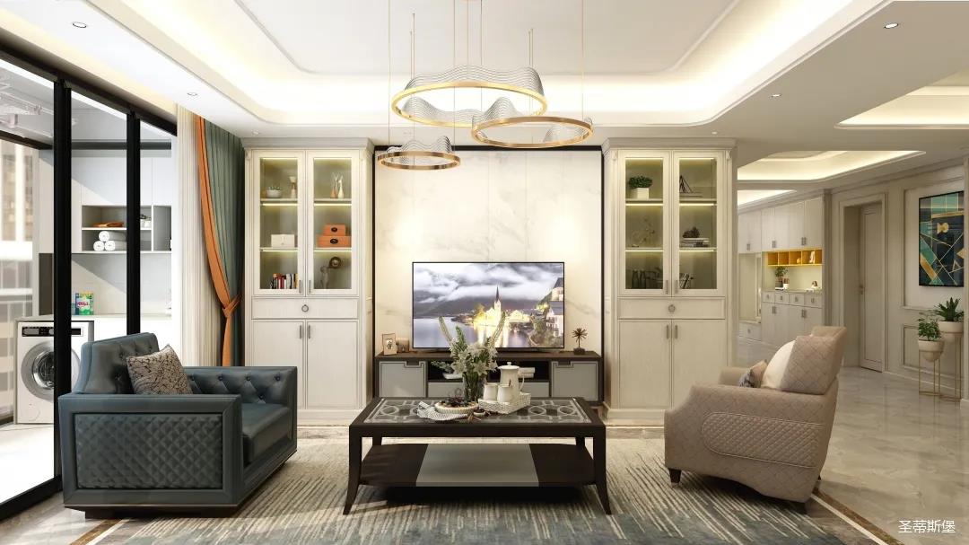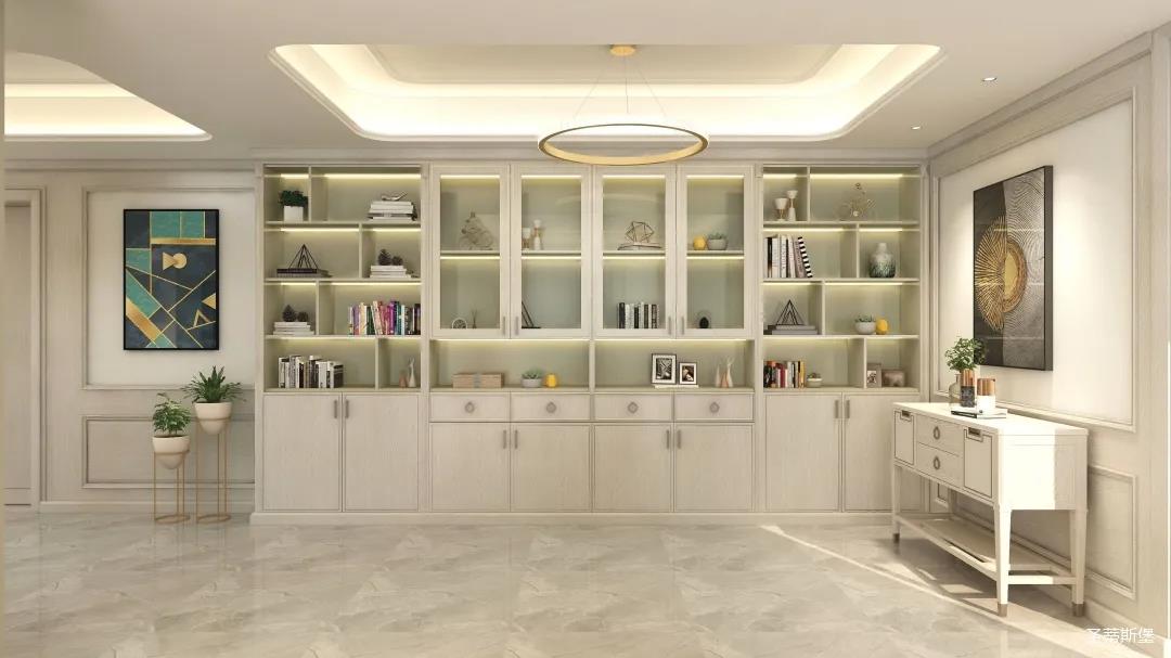 ▲?電視背景墻設(shè)計(jì)師完全根據(jù)業(yè)主家量尺所得,安裝的對(duì)稱(chēng)裝飾柜,集裝飾美與實(shí)用性于一體,業(yè)主超喜歡收藏,設(shè)計(jì)師也完全滿(mǎn)足了業(yè)主對(duì)空間儲(chǔ)物的需求。