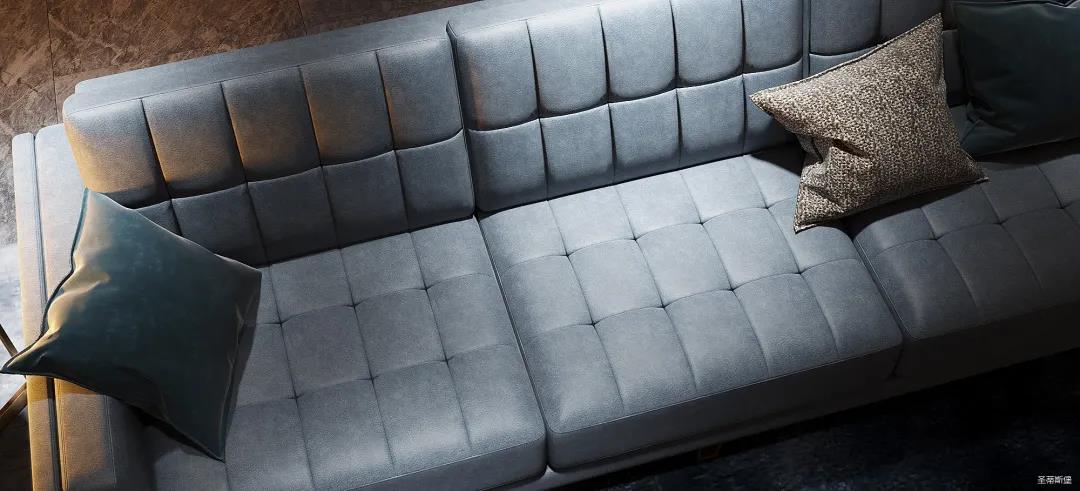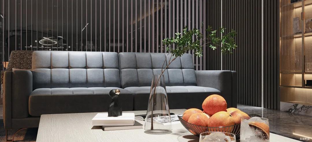 極具細節考究的“霸氣”沙發,從霧霾藍的色彩中彰顯著業主沉穩氣質與時尚品位。線條規律整齊,方塊式的設計,以摩登時尚演繹著優雅的幾何美學力量。