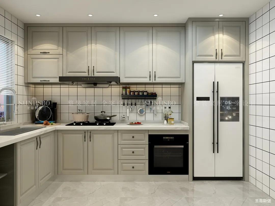 夫妻倆雖平時(shí)工作較忙,但對(duì)于一日三餐的要求一點(diǎn)都不馬虎。為了提高下廚的舒適度,將取-洗-切-煮動(dòng)線合理布局,操作順暢便捷。整體封閉式的收納格局+嵌入式的電器,令餐廚空間更干凈整潔。
