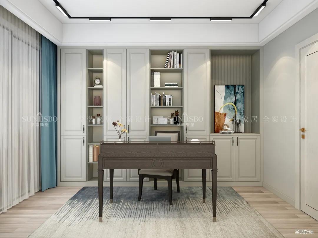 書房以黑白灰,作為打造舒適家居的經(jīng)典配色。深灰書桌,淺灰地毯,仿古白定制書柜,三者搭配帶著與生俱來的時(shí)尚藝術(shù)范。整體沒有絢麗多彩的顏色,卻總能令人耳目一新,只一眼便愛上這舒適的閱讀空間。
