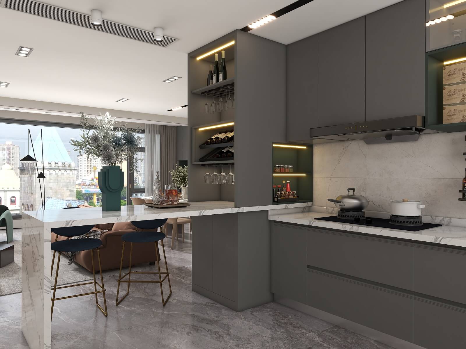 廚房的味道是香甜的,喜歡烹調(diào)的居者是歡喜的,呈現(xiàn)出來(lái)的食物自然是美味的,帶著這份心情融入到空間中,生活的煙火氣也可以是浪漫的,連接著這份愛(ài)意,詮釋著家的味道。