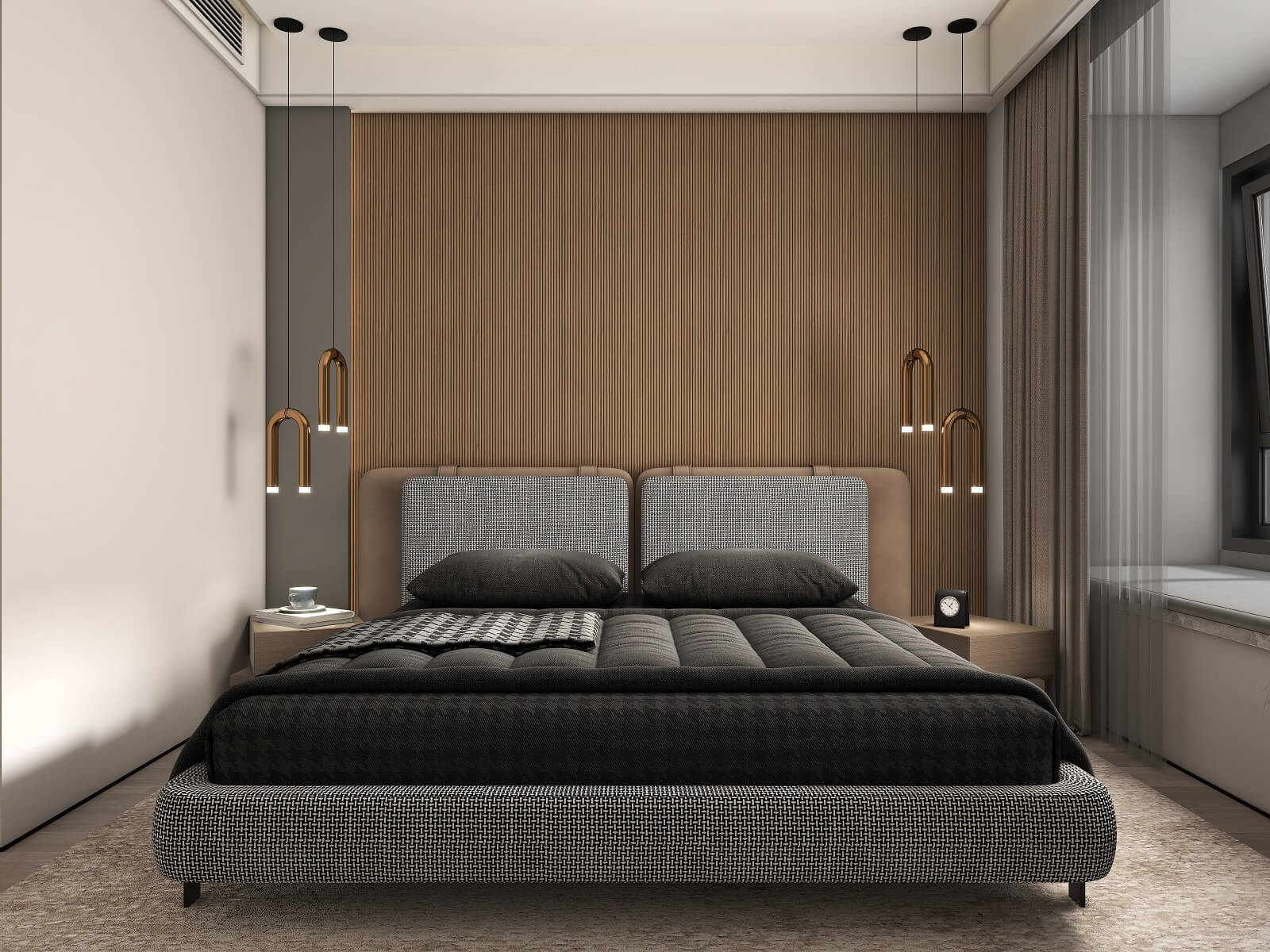 暗調(diào)的臥室靜靜的訴說(shuō)日子的平和,沒(méi)有繁瑣的點(diǎn)綴,在簡(jiǎn)約中回歸到純樸,讓身心在靜謐中得到治愈與陶冶。